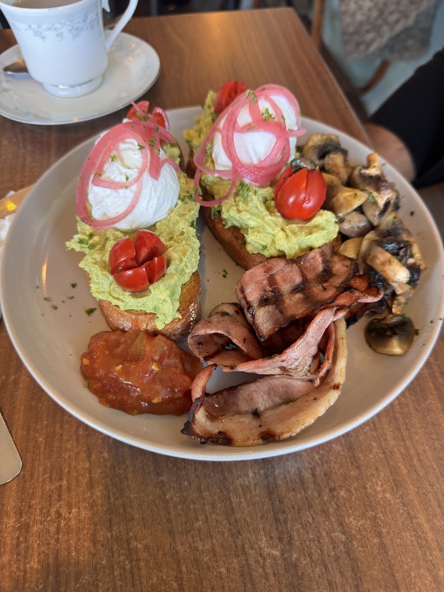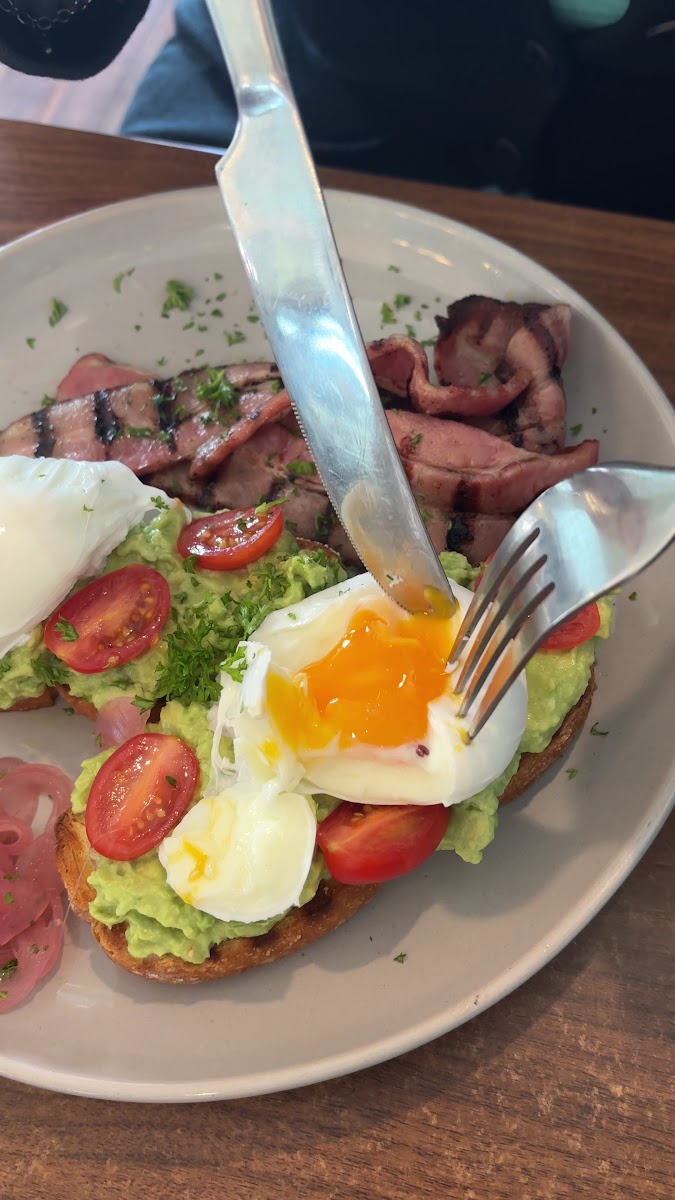 Goat Horn Cafe offers an impressive menu, focusing primarily on breakfast, making it an ideal destination for a splendid start to your day. Their Full Breakfast is a hearty feast, featuring perfectly cooked freerange eggs, savory bacon, homemade baked beans, juicy Waipawa beef sausage, and the lovingly crafted hash browns. All this goodness is complemented by relish and served with wholesome wholegrain toast, creating a plateful of comfort that is sure to satisfy. If you're in the mood for something more luxurious, the Eggs Benedict is a must-try — cooked to perfection, this dish comes with your choice of bacon or mushrooms atop an English muffin or hash brown, gloriously smothered in their velvety hollandaise sauce.